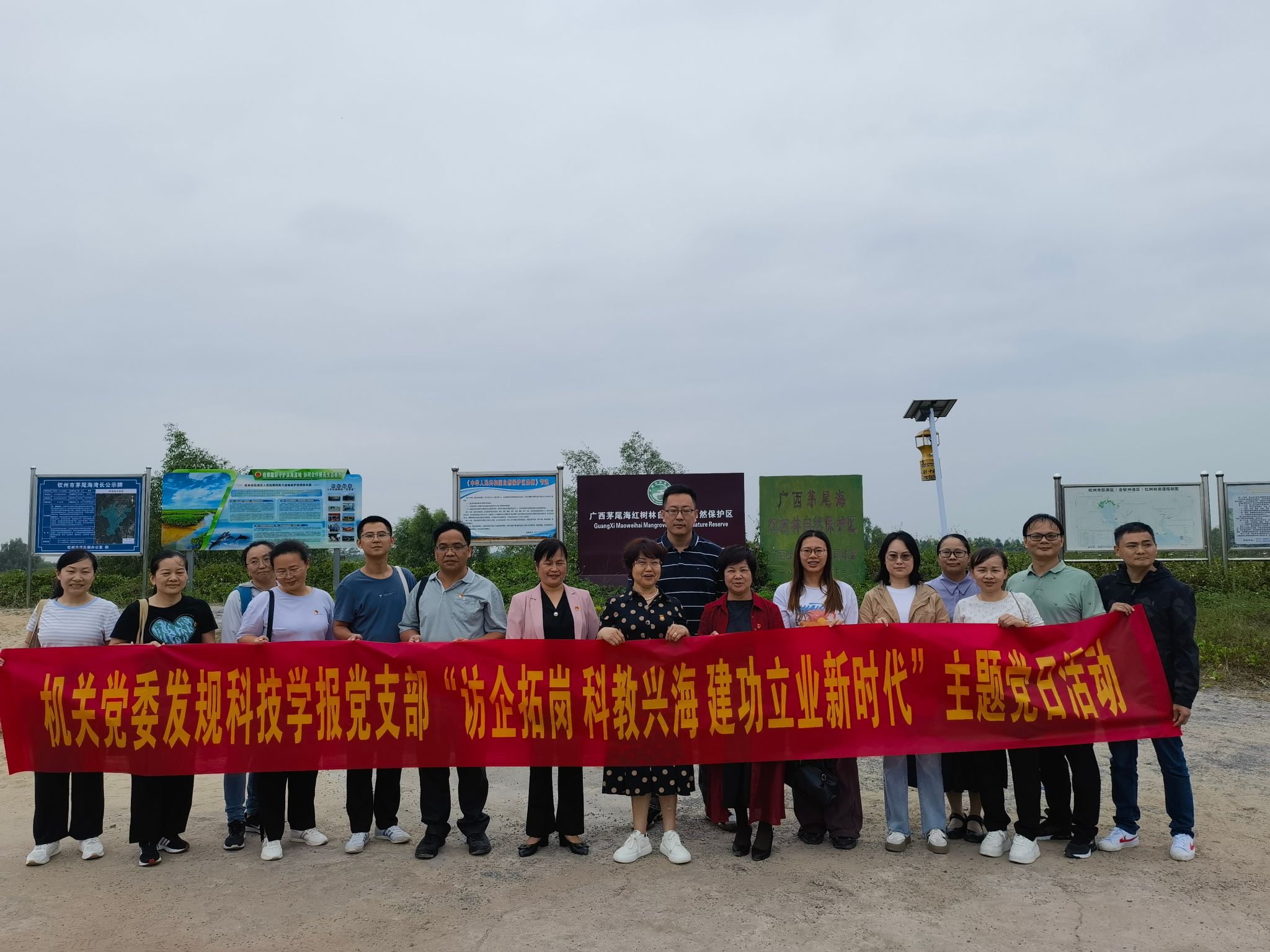 为进一步巩固学习贯彻习近平新时代中国特色社会主义思想主题教育成果,主动融入国家“海洋强国”战略,切实把主题教育成果转化为学校高水平应用型大学建设的新思路新举措,10月18日下午,机关党委发规科技学报党支部到康桥·白鹭湾政协委员工作站、茅尾海自治区级红树林自然保护区等地开展“访企拓岗,科教兴海,建功立业新时代”主题党日活动。