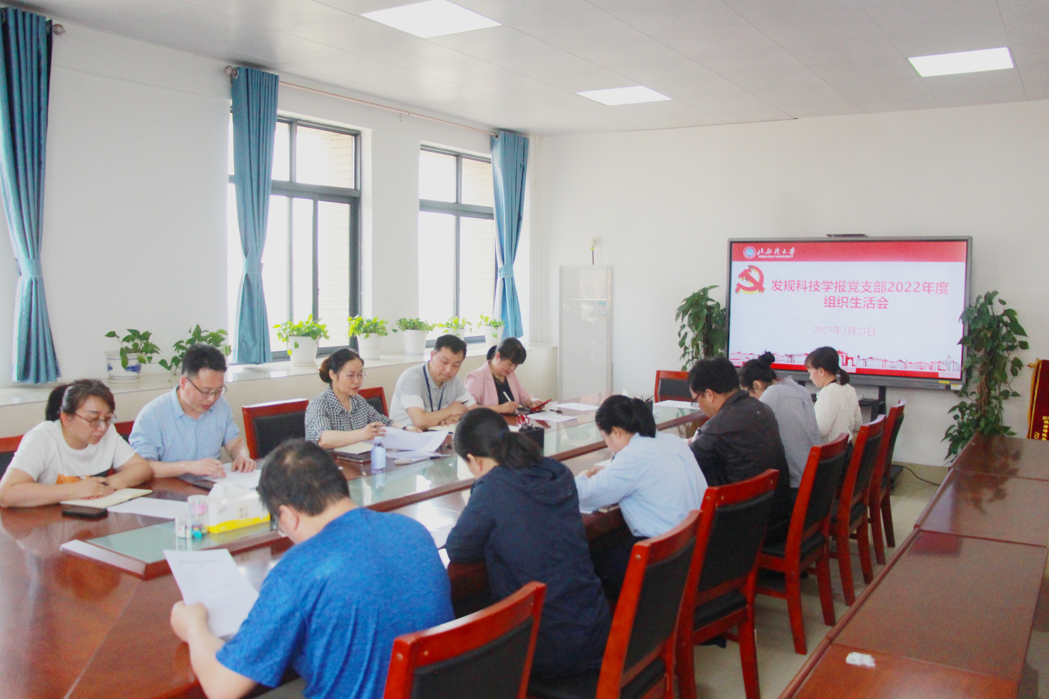 3月23日上午,发规科技学报党支部召开2022年度民主组织生活会暨支部书记讲党课。