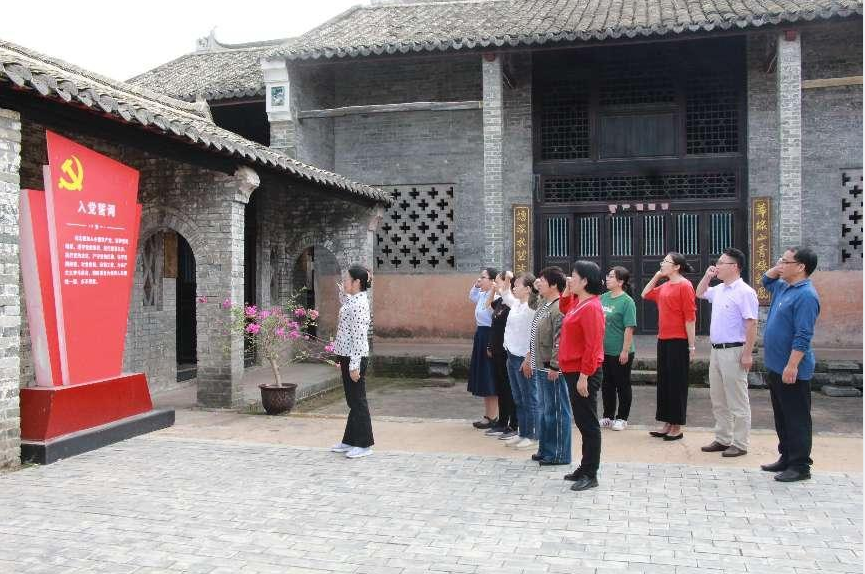 全体党员在萍塘村革命斗争史纪念馆重温入党誓词