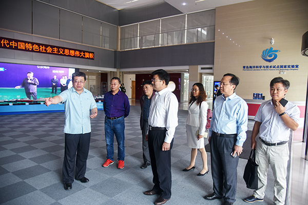 青岛海洋科技试点国家实验室学术委员会秘书长为我校考察组介绍实验室建设情况