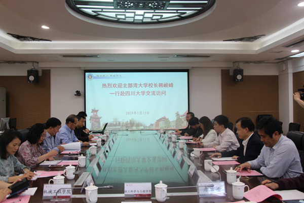 5月15日下午,我校校长韩峻峰率队赴四川大学考察学习。四川大学校长李言荣院士、副校长晏世经等热情接待了韩校长一行。双方在该校行政楼举行了交流座谈会,座谈会由晏世经副校长主持,该校相关职能部门和二级学院负责人参加了座谈会。