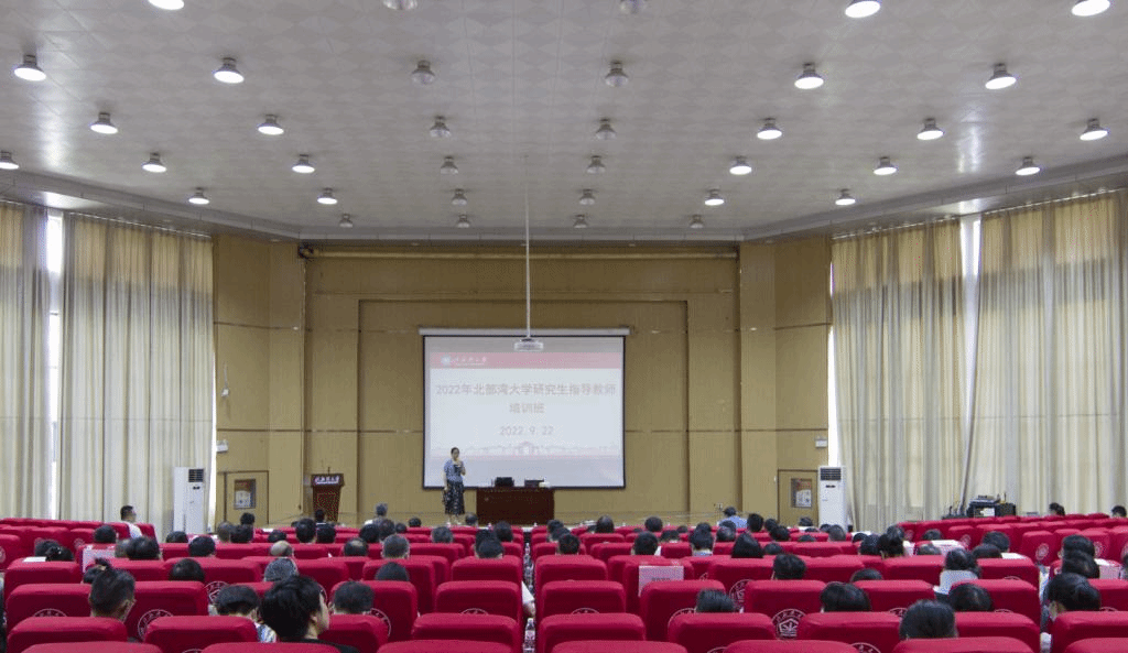 会前研究生处处长刘琼立足北部湾大学研究生教育实际从导师队伍建设规划、研究生教育质量保障制度建设等方面为参会导师和学生介绍了北部湾大学研究生培养制度。