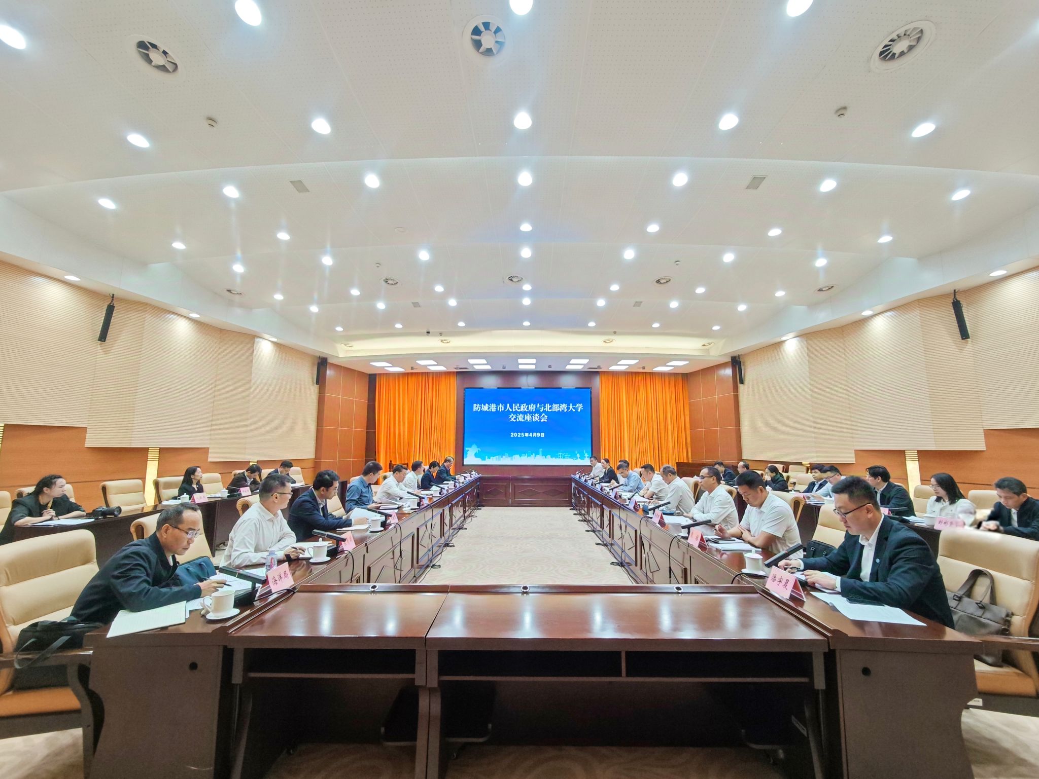 邱明宏对苗剑一行的来访表示欢迎。他说,防城港市正深入学习贯彻党的二十大和党的二十届三中全会精神,深入贯彻落实全国两会精神和习近平总书记关于广西工作论述的重要要求,聚焦建设现代化临港工业城市的发展定位,解放思想、创新求变,向海图强、开放发展,扎实开展“三个突破年”行动,加快构建具有防城港特色和优势的现代化产业体系。北部湾大学具有国家高级海船船员和国家一级渔业船员培养培训资质,兼具海洋性、应用型和国际化的办学特色,与防城港市的发展定位高度契合。希望以此次签订协议为契机,进一步深化校地产学研联动,在海洋科研创新平台共建共享、海洋科创与人才培养、教育教学团队建设、就业创业联动新机制共建、海洋文化和民族文化研究等方面开展多层次、宽领域、全方位的合作交流,形成合作互动、优势互补、互利共赢、共同发展的良好格局。