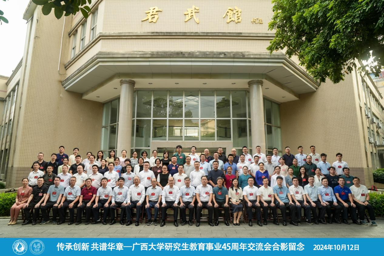 10月12日,广西大学在君武馆举办“传承创新 共谱华章”广西大学研究生教育事业45周年交流会。自治区教育厅、自治区学位办,全区高校、企业、校友等120余人参会,我校党委副书记陈磊,研究生院、发展规划处负责人等参会。会议由广西大学副校长、教务长冯家勋主持。