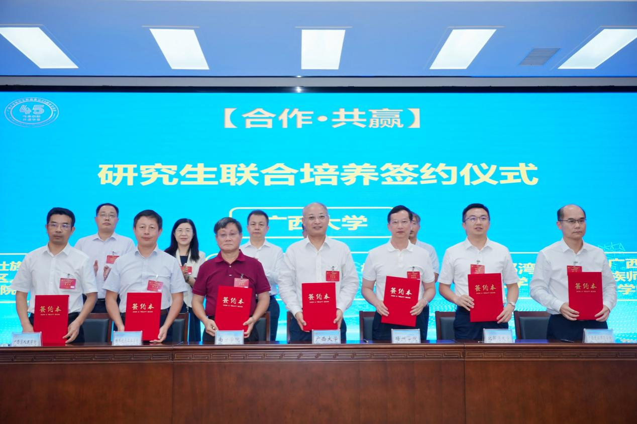 会中,广西大学与北部湾大学、梧州学院、广西民族师范学院、桂林航天工业学院、南宁学院、广西壮族自治区人民医院等6家单位签署了研究生联合培养协议,进一步明确研究生培养的规范管理,推动两校对口支援工作走深走实。